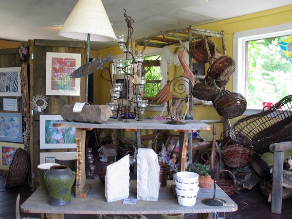 A talented group of Nova Scotian artists feature their works at One Sky Now Gallery, including stone carvings, garden design and landscapings, folk art paintings, watercolors, birdhouses, wreaths, masks, paper mache figures, twig accessories, etc.